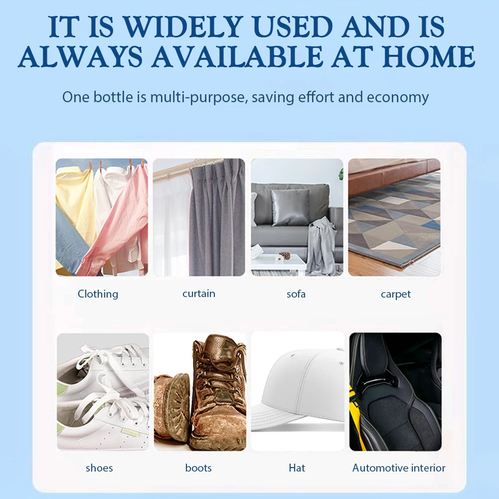 Stain remove in seconds: It takes only a few seconds to complete an amazing cleaning! In the place with stains, release an appropriate amount of solution to scrub and remove the stains, and keep the original color of the clothes bright