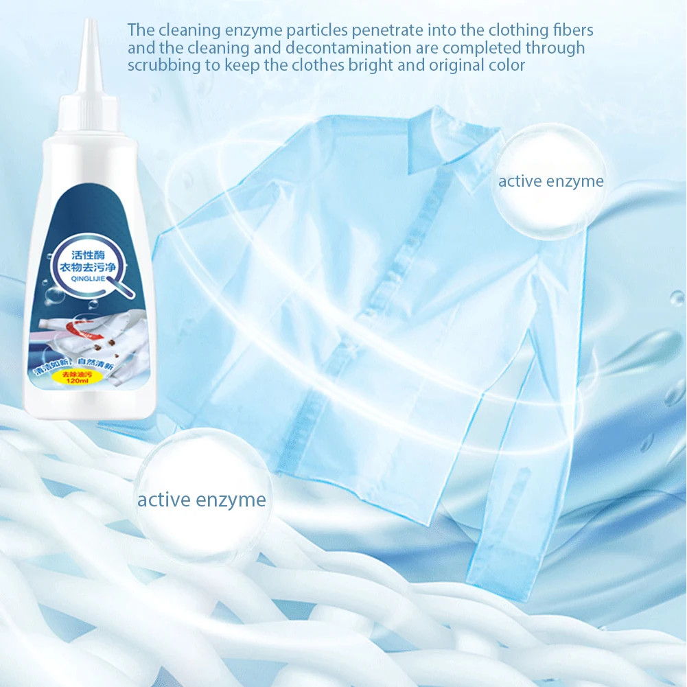 120ml Clothes Oil Stain Remover Active Enzyme Clothing Stain Removal Agents Non-toxic Remover Effective Liquid For Fabric Cloth