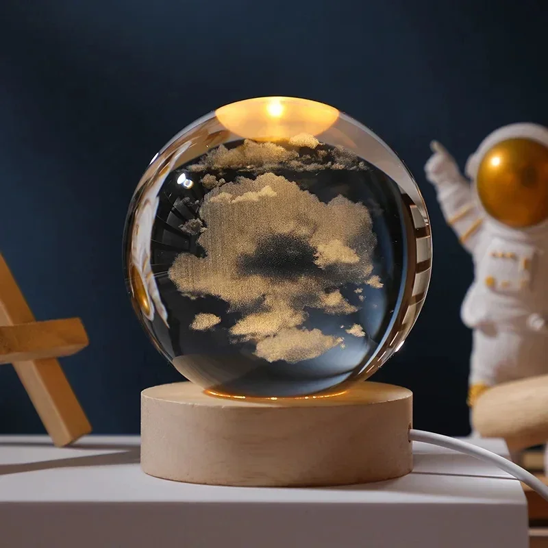 1pc Bedside Lamp Solar Theme Cosmos Series Crystal Ball Night Lights Milky Way Moon Small Ornaments for Desk Creative Gift