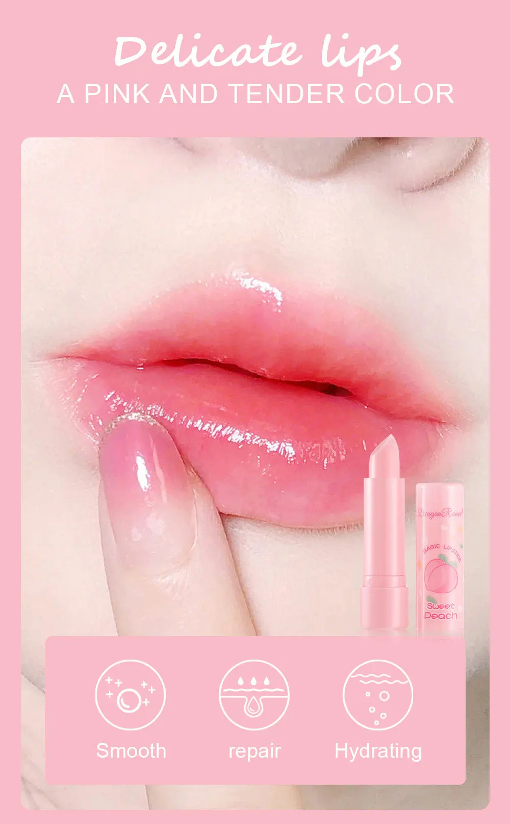 1PC Color Changing Lip Balm Temperature Change Tinted Lipstick Peach Moisturizing Lasting Waterproof Makeup Lip Care Cosmetics