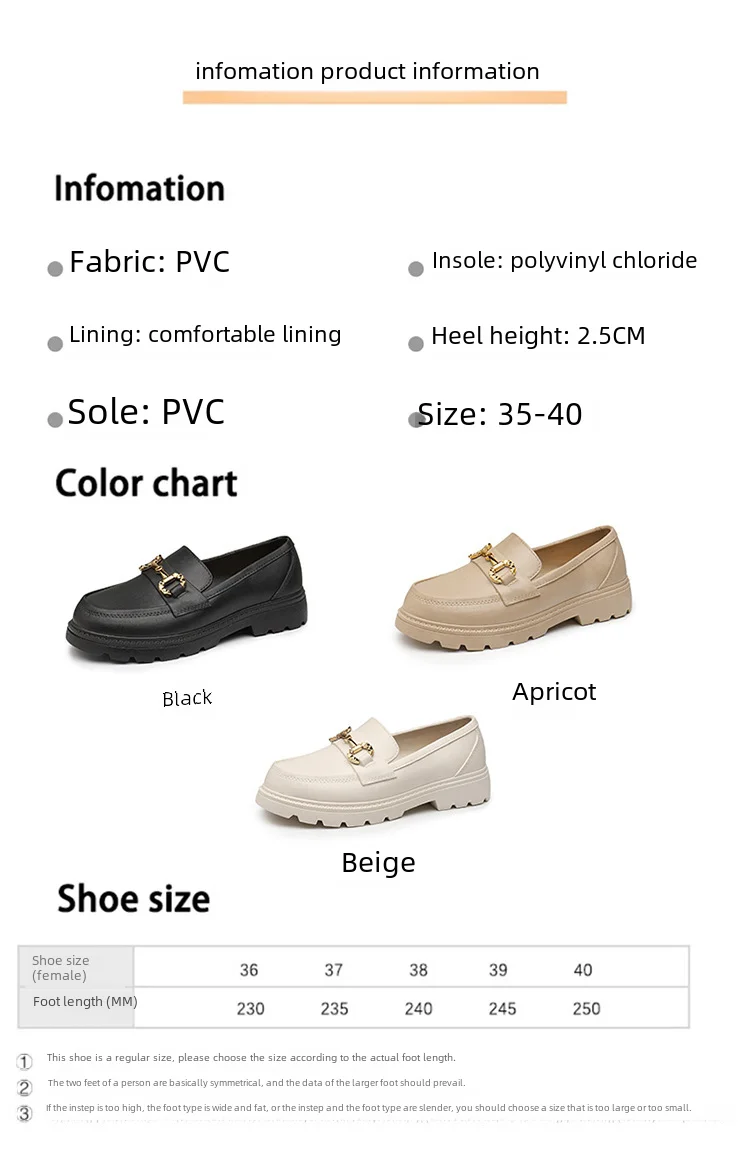 2023 New British Style Women's Loafers Thick Bottom Versatile Casual Anti-slip Waterproof Outer Wear Low-cut Rain Shoes