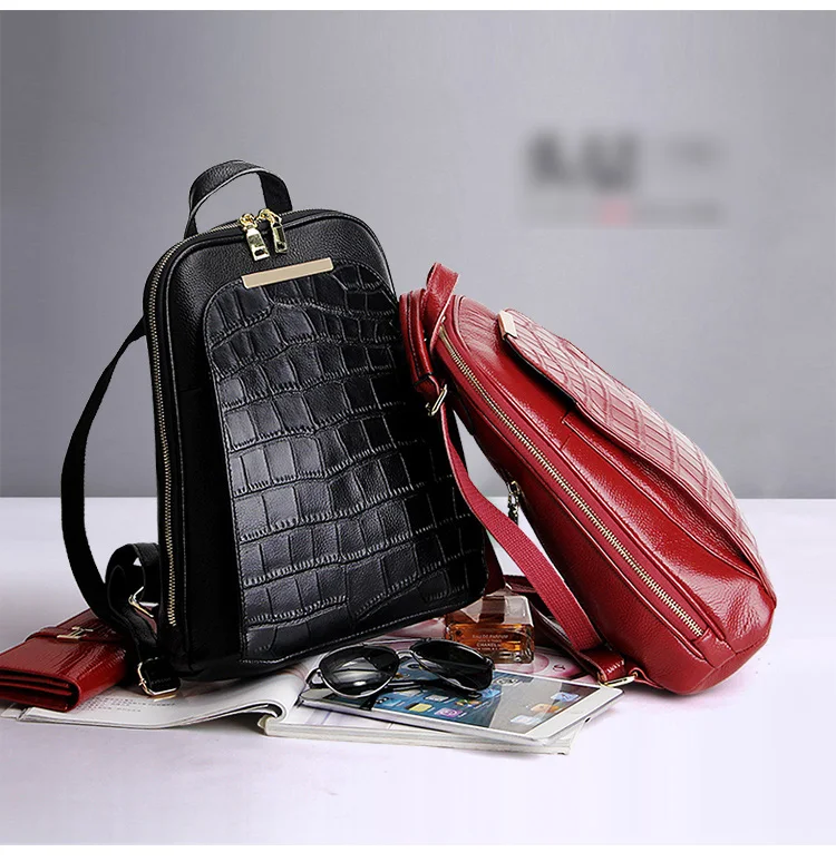 2023 Popular Natural 100% Real Genuine Cow Leather Everyday White Silver Women Backpack Ladies Girls Top Layer Cowhide Book Bag - Clikcy