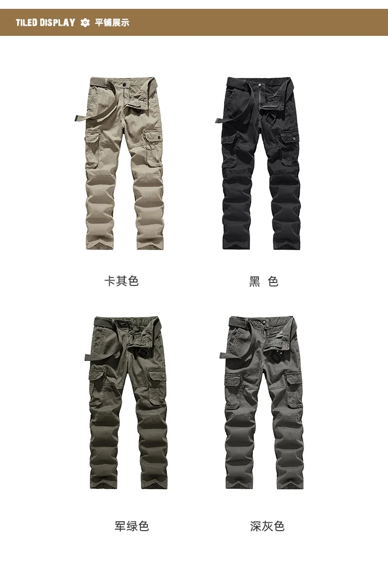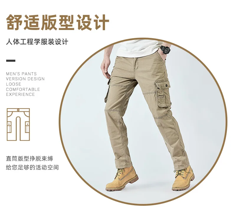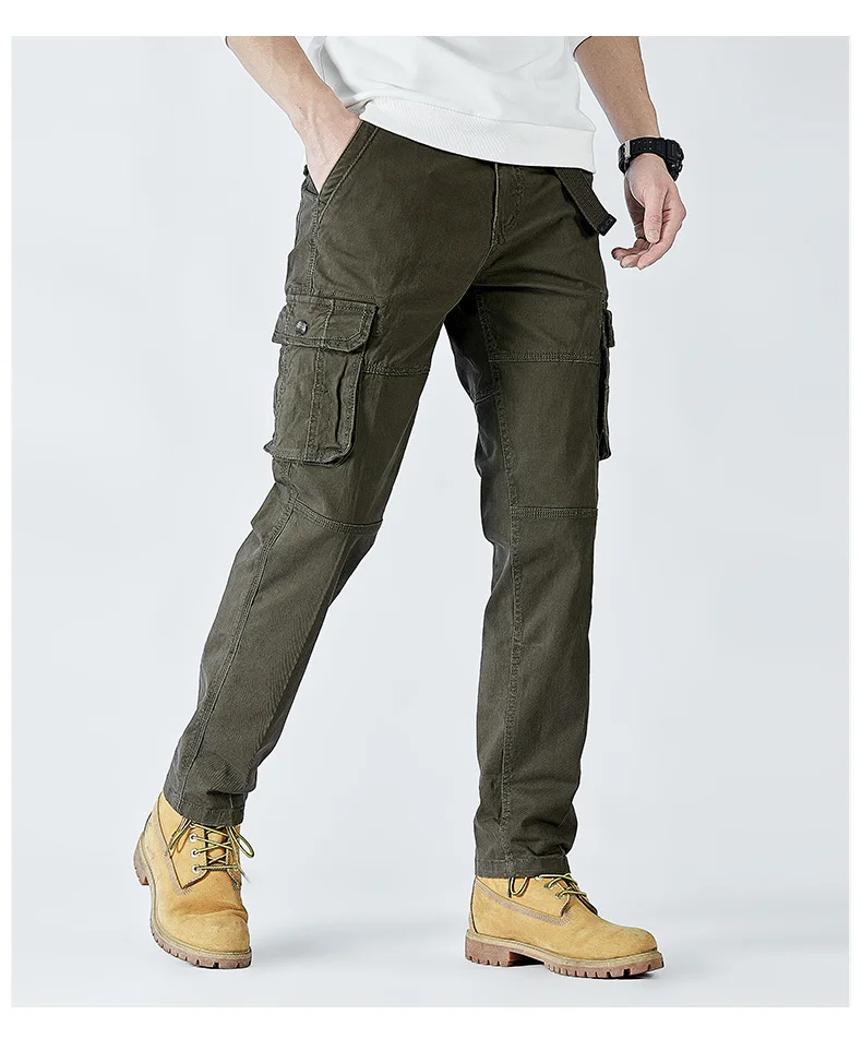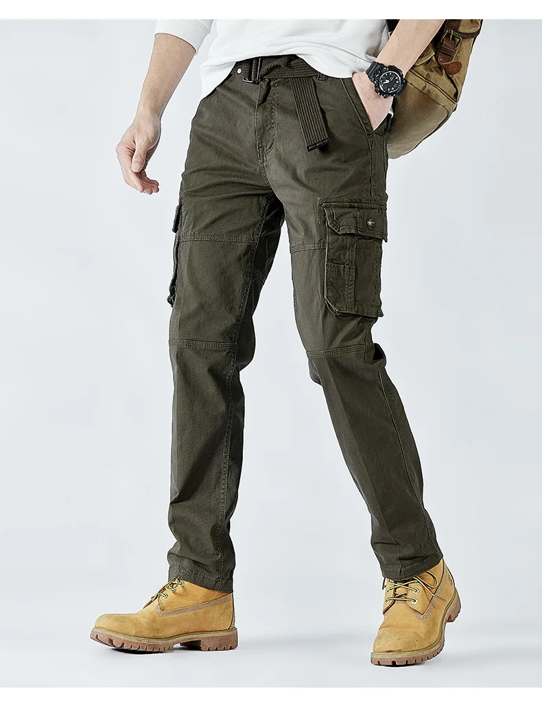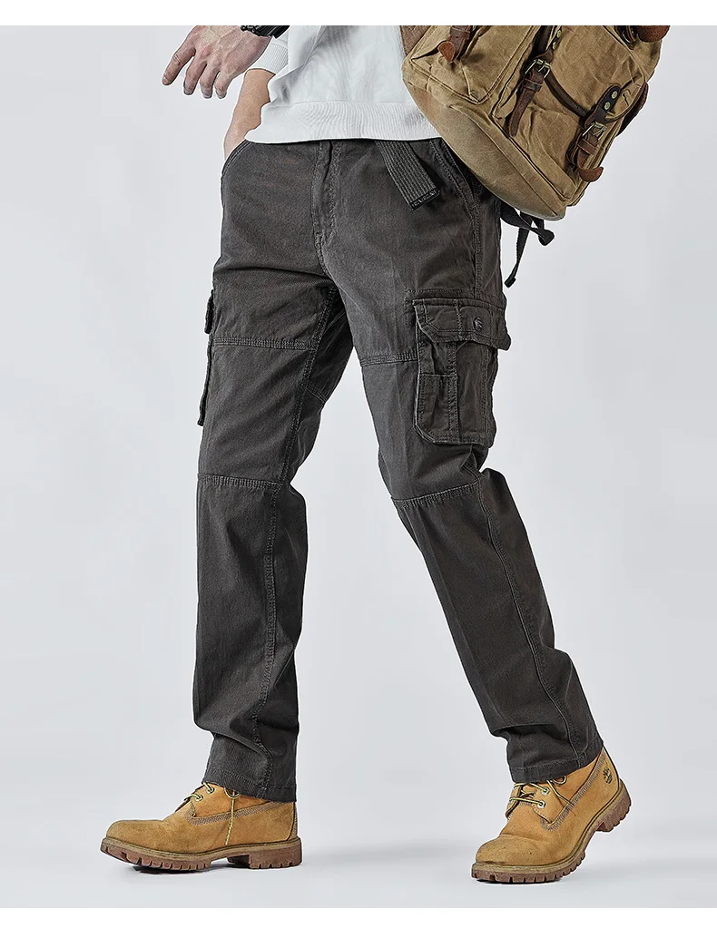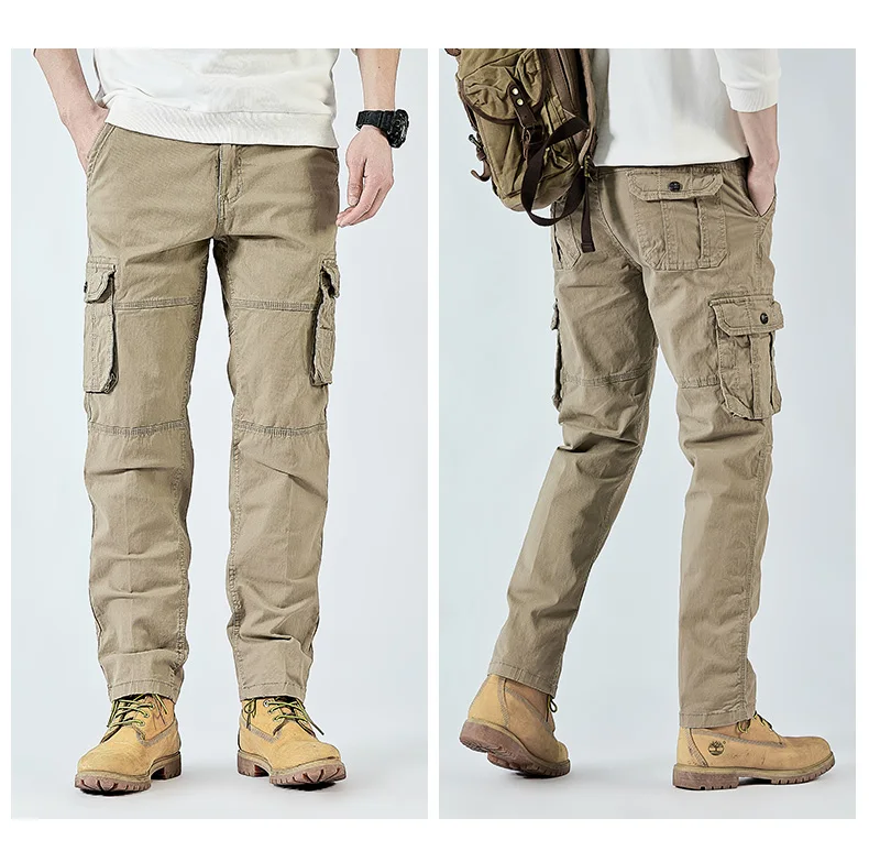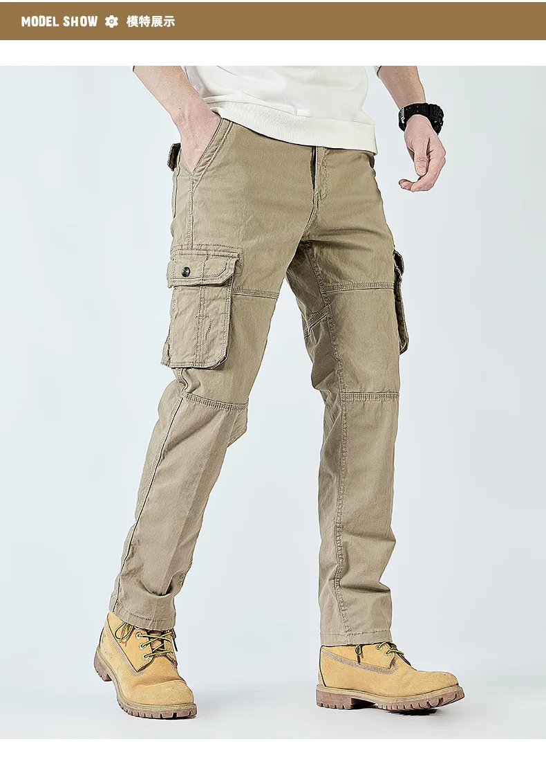 2025 Men's Cargo Pants Straight Leg Cotton Stretch Tactical Trouser Male Military Outdoor Camping Fishing Casual Work Wear Khaki