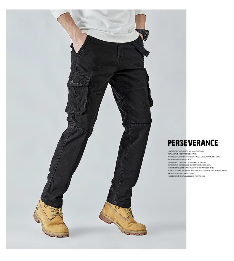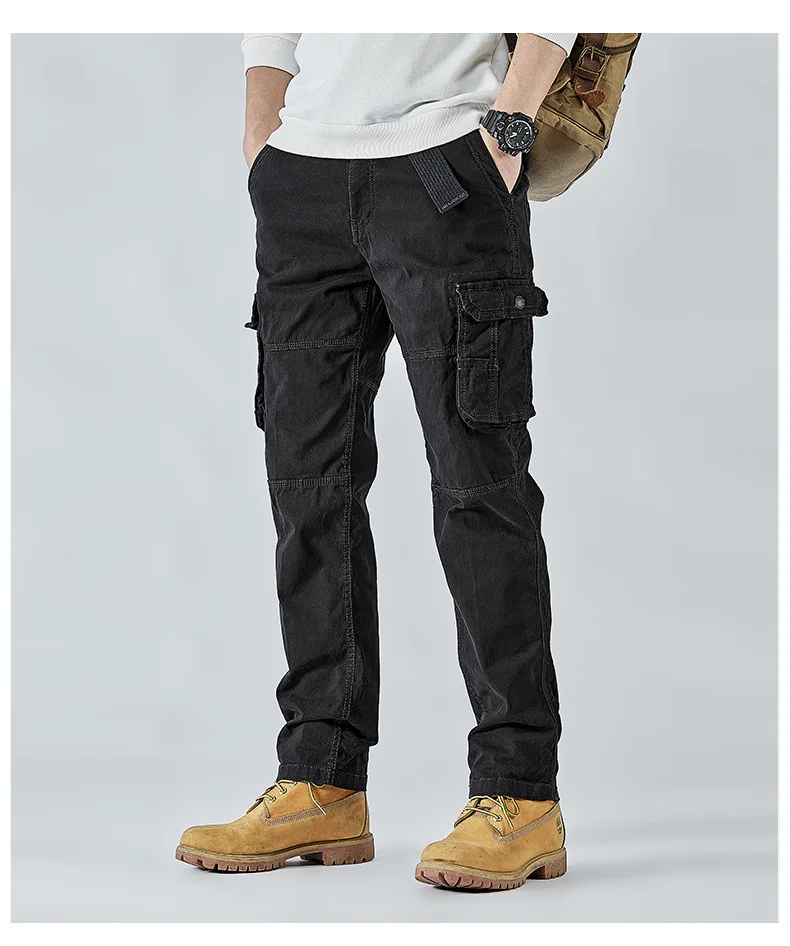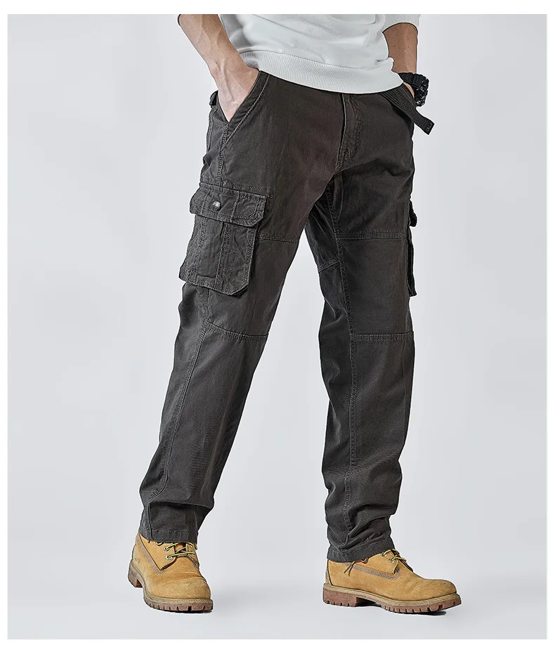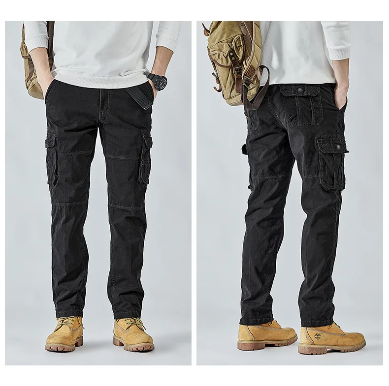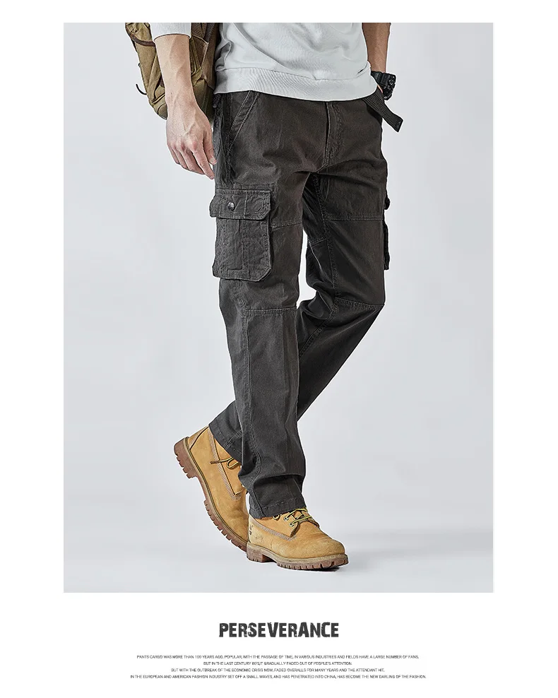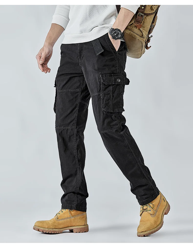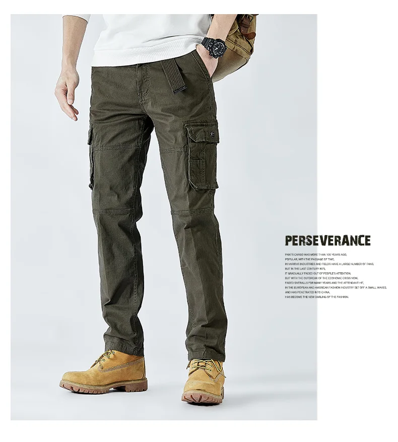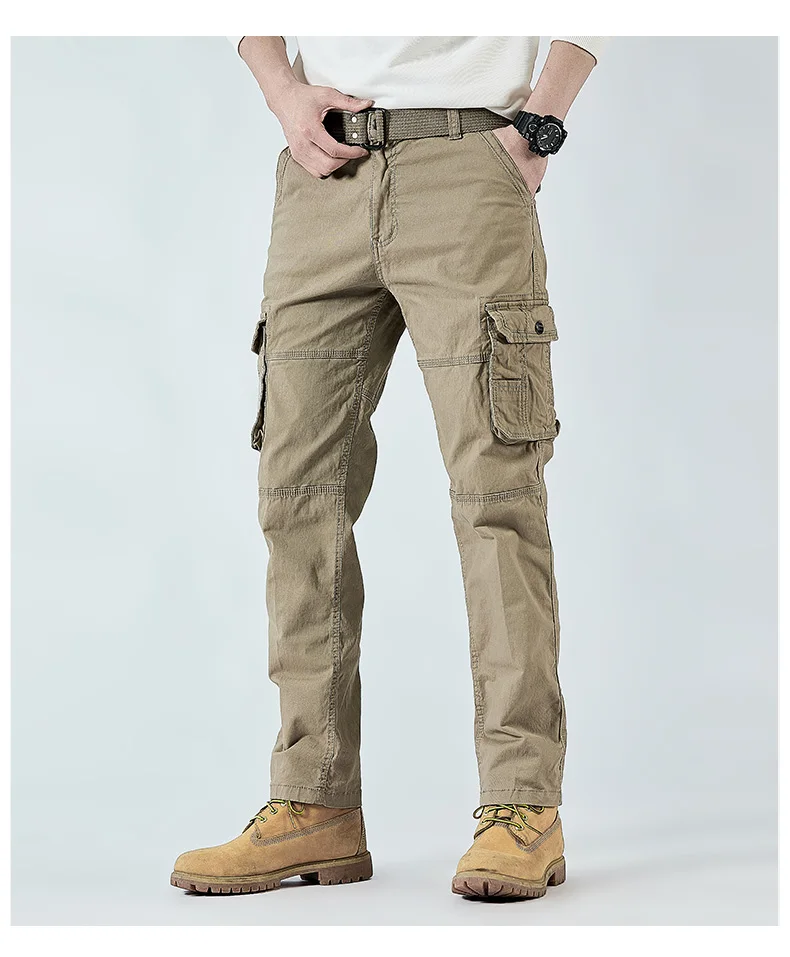 2025 Men's Cargo Pants Straight Leg Cotton Stretch Tactical Trouser Male Military Outdoor Camping Fishing Casual Work Wear Khaki