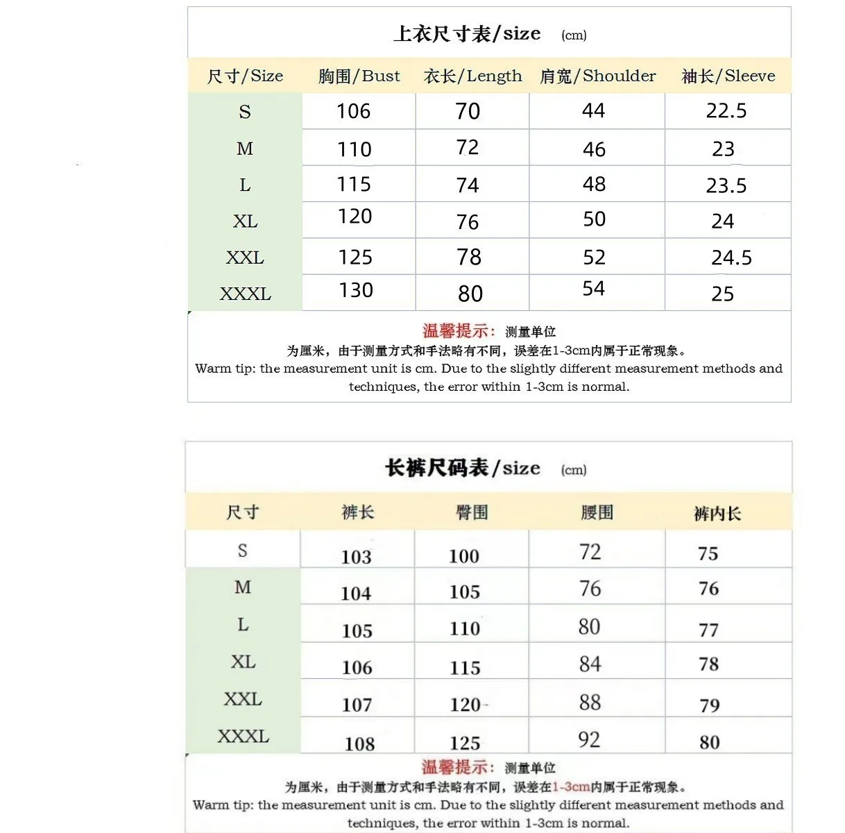 Out Side Length: trousers
