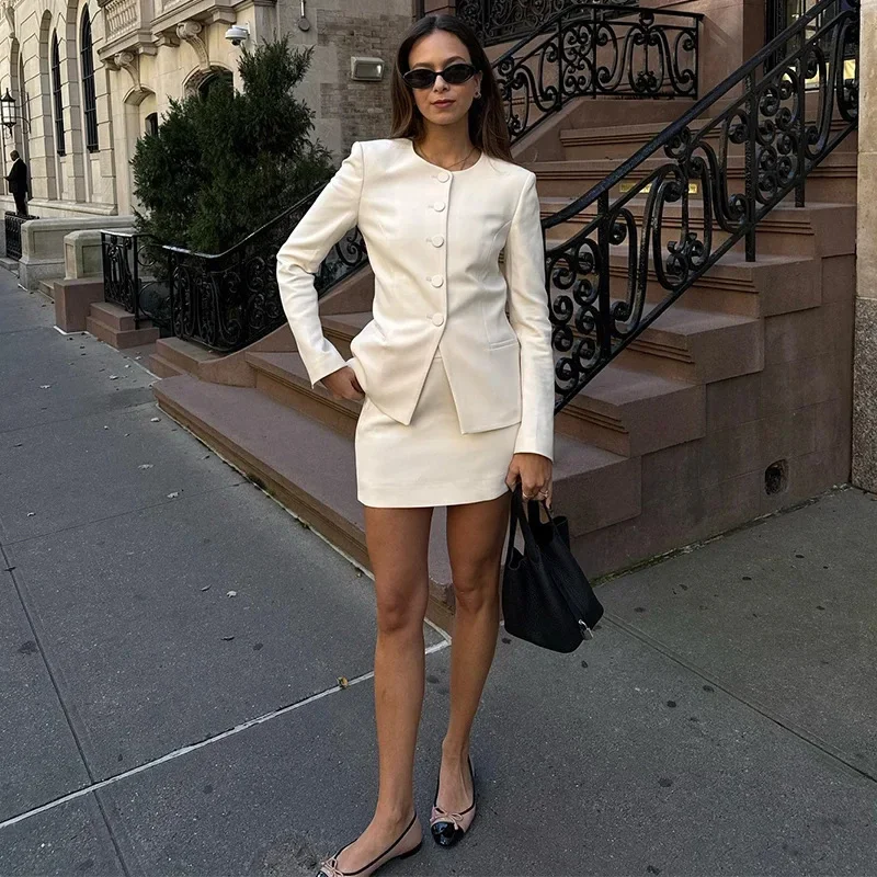 2025 Spring Elegant White French Style Socialite Suit Jacket Cross-Border Independent Station New Model Fashionable Skirt Set