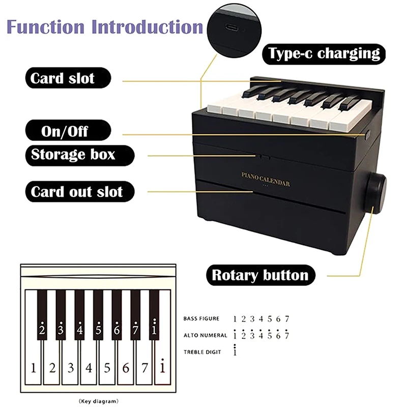 3,Practical Piano Calendar:The 3D Art 15 key piano calendar uses a simplified sheet music design on paper. There are also USB charging and volume adjustment buttons that allow you to set the sound level to your liking at any time.