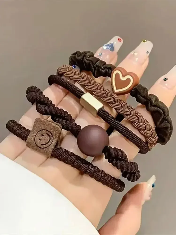 5/10/20pcs Simple Style Hair Tie Set Braided Hair Rope Heart Decor Scrunchies Elastic Ponytail Holder Hair Accessories For Women