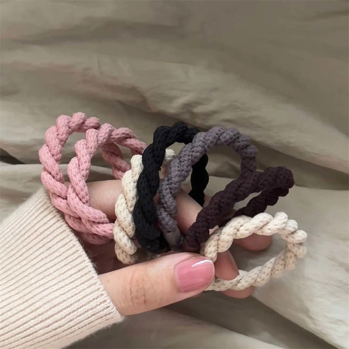 5pcs/Set Twisted Hair Ties Thick Rubber Bands Elastic Hair Band Women Hair Accessories Basic Daily Headwear