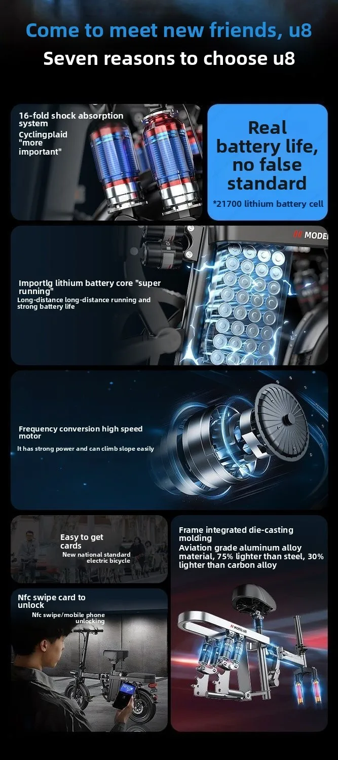 Aluminum alloy electric bicycle, ultra lightweight, portable, compact, foldable, lithium battery electric bike