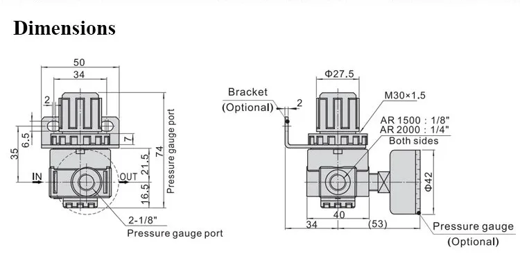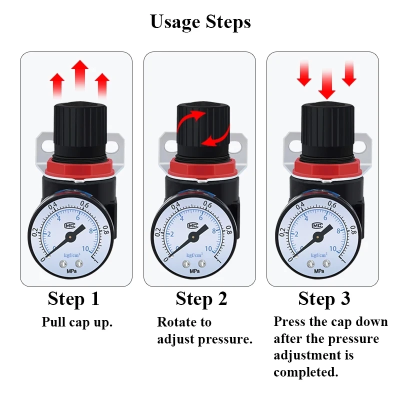 AR2000 1/4'' Air Pressure Regulator Control Compressor Pump Gas Regulating Treatment Units with Gauge Adjustable