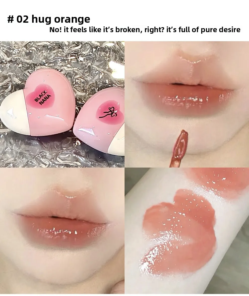 Black Nana Lip Gloss Cute Heart Shaped Lip Glaze CPNP Verified Lipstick Long Lasting Hydrating Natural Make Up Cosmetic