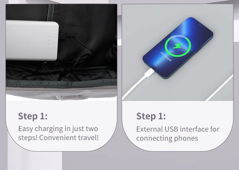 【USB PORT DESIGN】: With built in USB charger outside and built in charging cable inside,this usb backpack offers you a more convenient way to charge your phone while walking. Please noted that this backpack doesn't power itself, usb charging port only offers an easy access to charge(POWER BANK IS NOT INCLUDED).