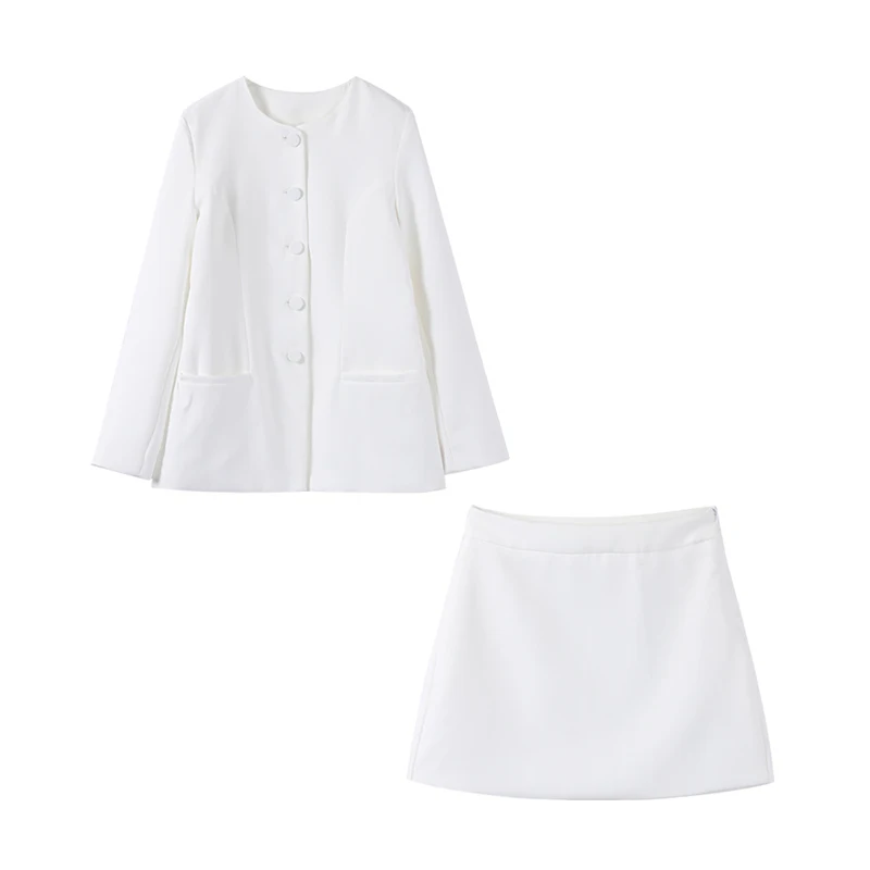 Casual Single Breasted Loose O-neck Blazer Coat Elegant Solid Skirt Set for Women High Waist Skirts Female 2025 Spring Outfit
