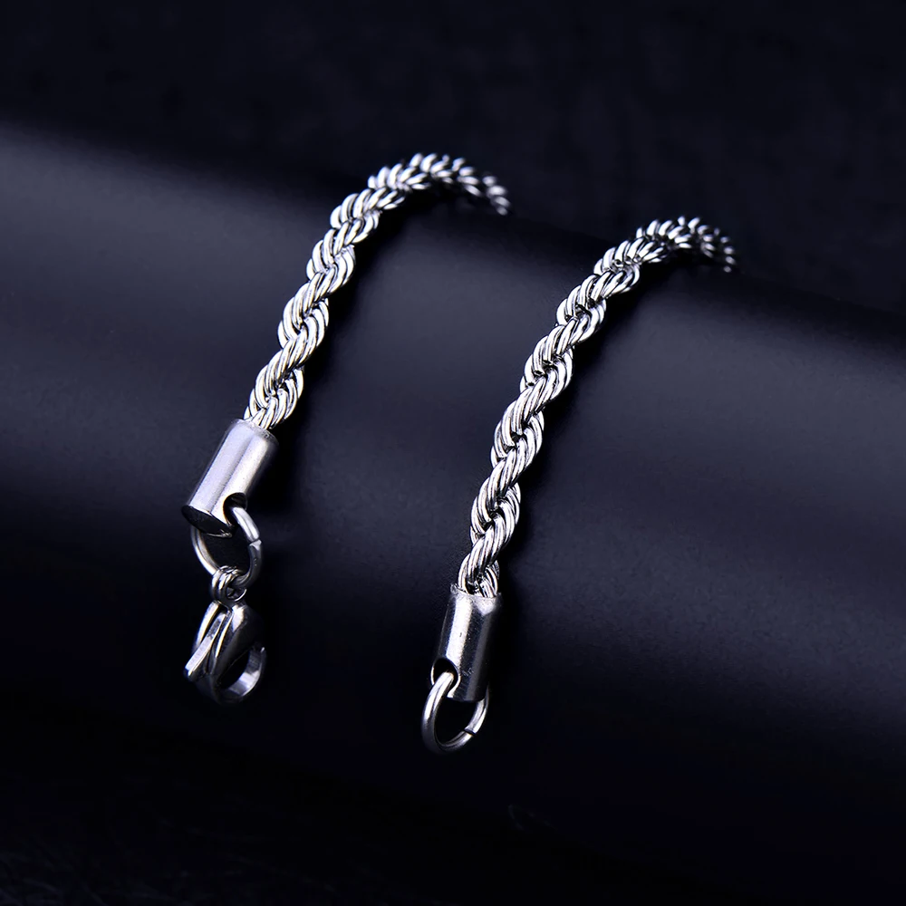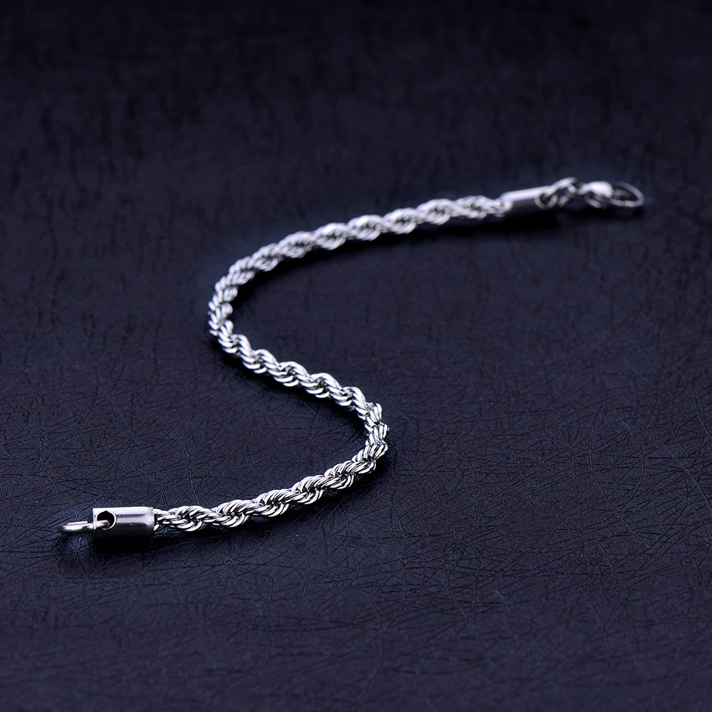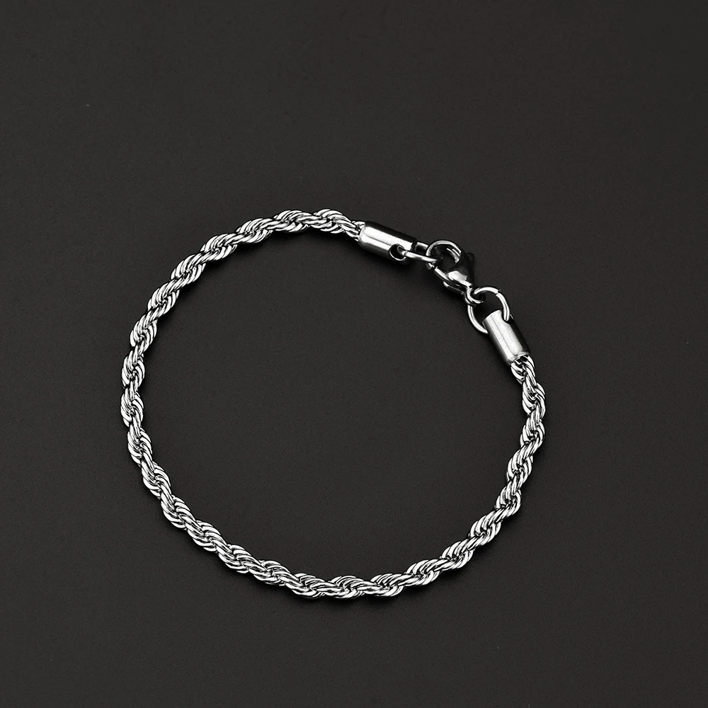 Cheap wholesale Width 4MM stainless steel twisted rope chain bracelet fashion jewelry for men and women party gifts drop ship