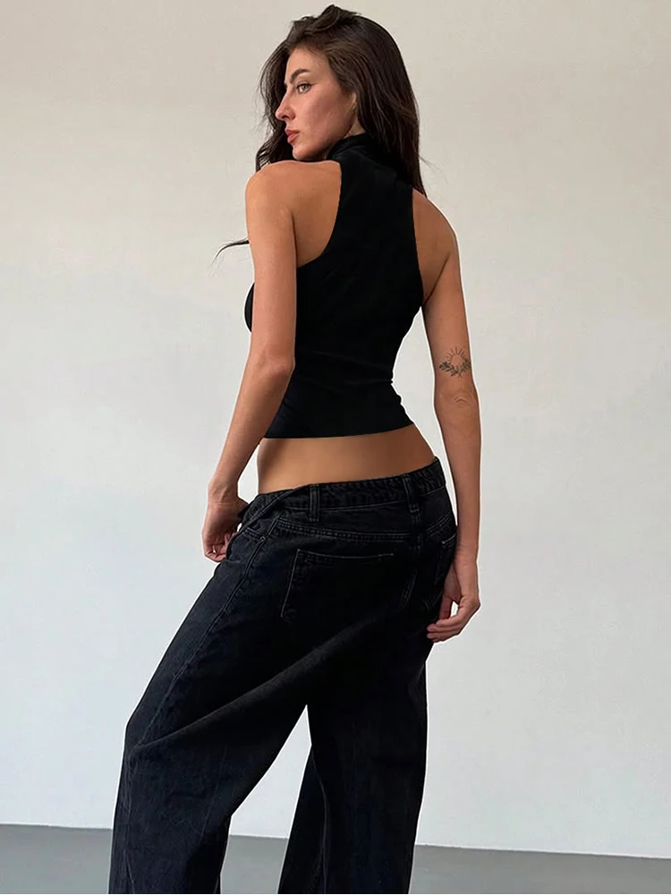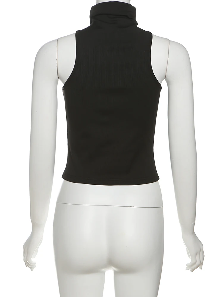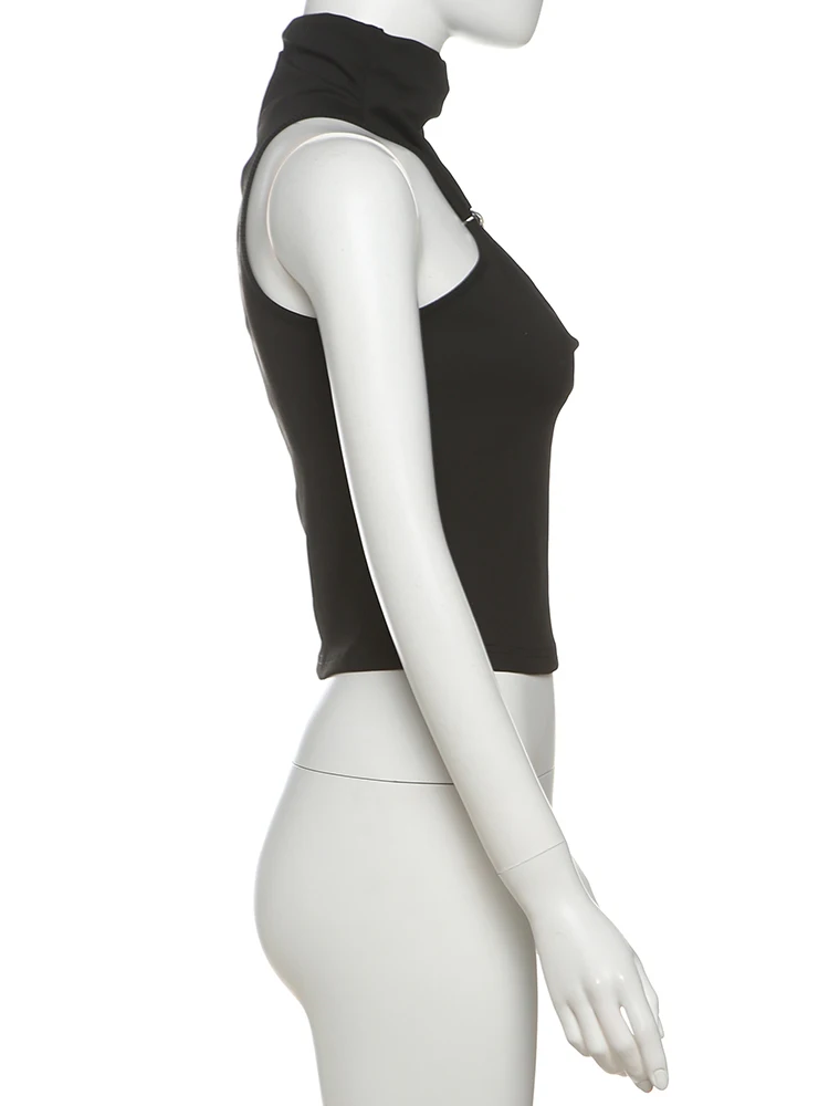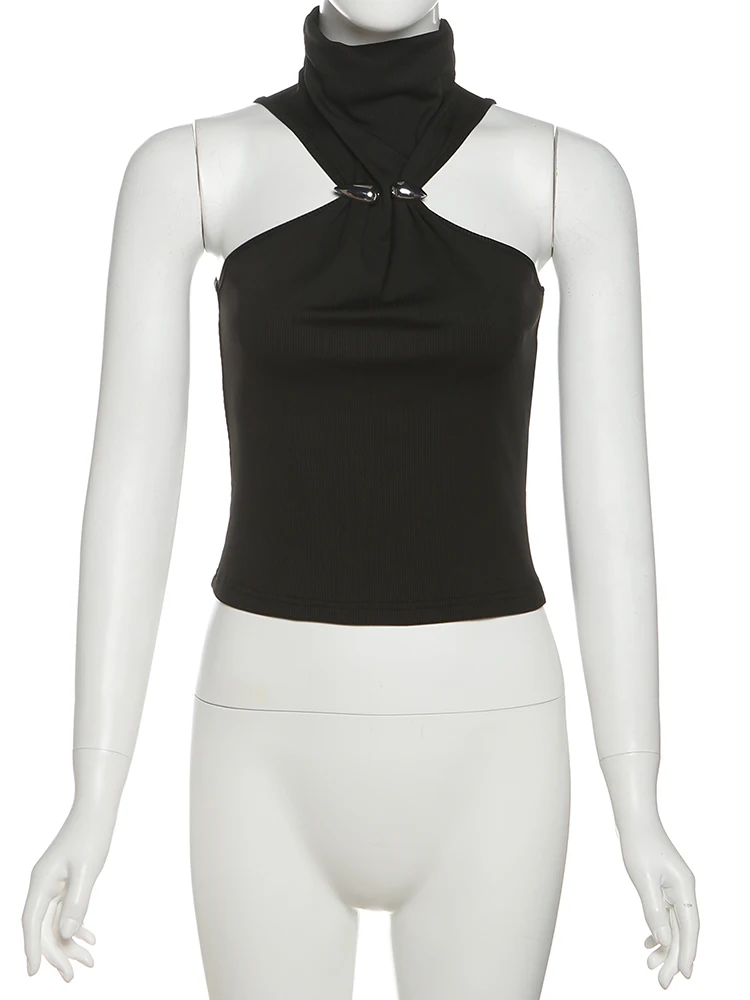 Cutenew Metal Bodycone Halter Women Tanks Classic Solid Stand Collar Skinny Cropped Vests Female Basic Fashion Streetwear Tops