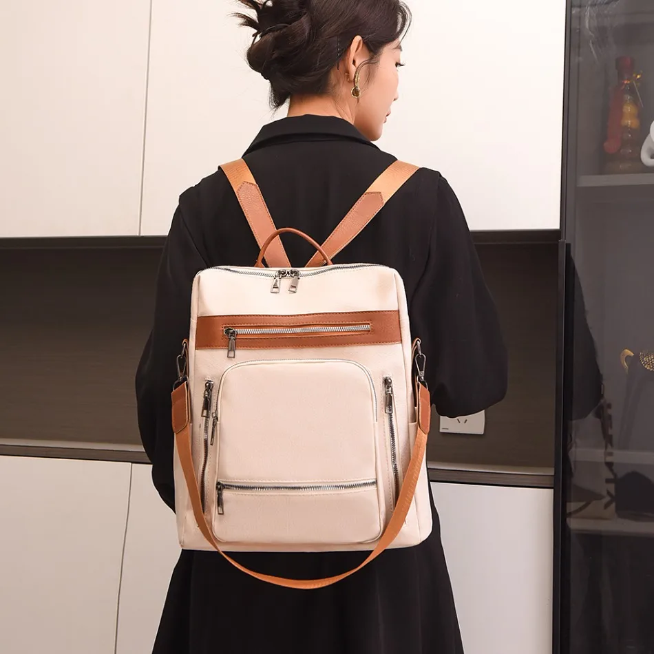 High-quality Leather Women Classic Back Pack 2025 Solid Color Luxury Travel Backpack Casual School Bags Girls Mochilas Feminina