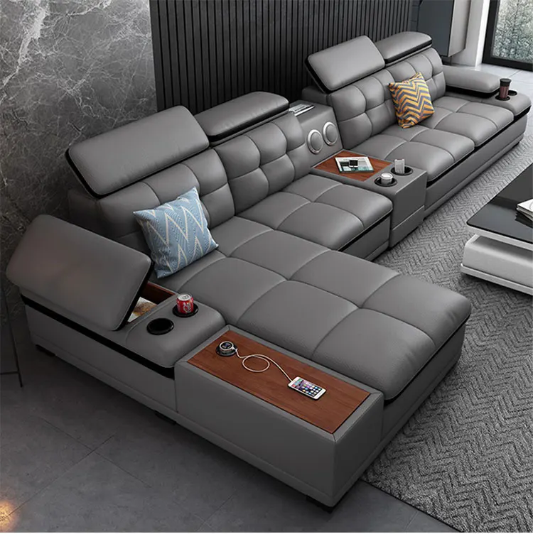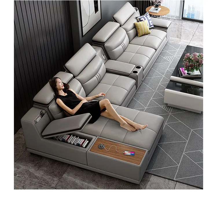 Luxury Wooden Sofa Set Design Modern Living Room Straight L Shaped Smart Sofa Bed With Storage