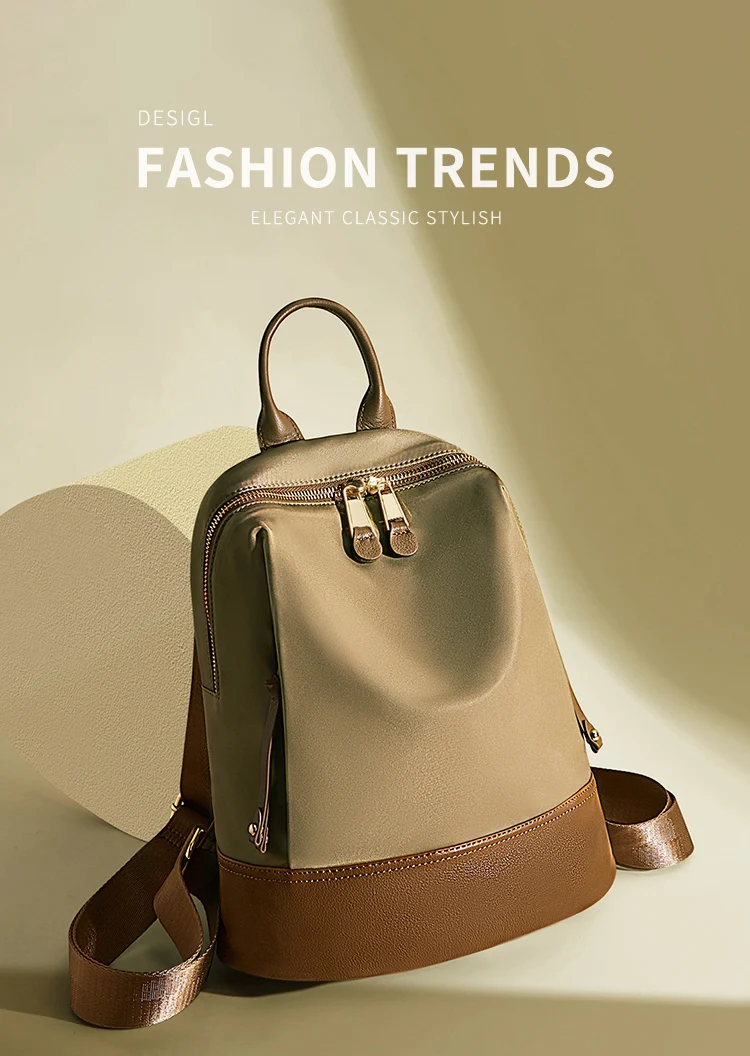 Marino Orlan Cow Leather Backpack for Women 2025 New Fashion Spring&Summer Waterproof Nylon Cloth Travel Student School Bag - Clikcy