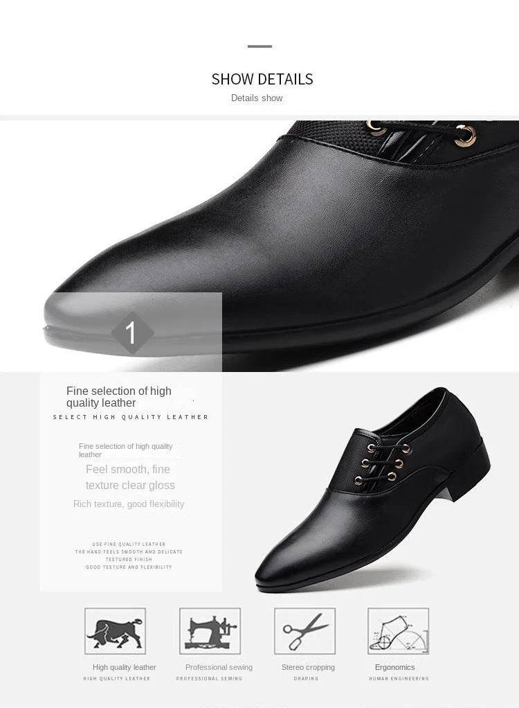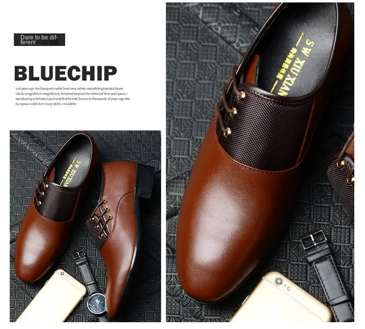 Men Formal Leather Shoes Lace Up Oxford Casual Business Black Leather Shoes Men Wedding Party Office Work Shoes