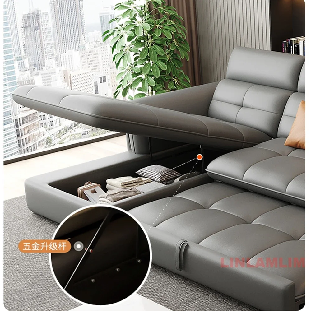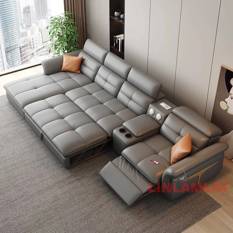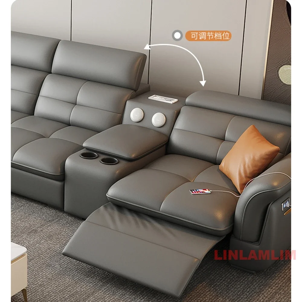Modern Electric Recliner Sofa Bed with Adjustable Backrest, L-Shaped Multifunctional Italian Genuine Leather Sectional Couch