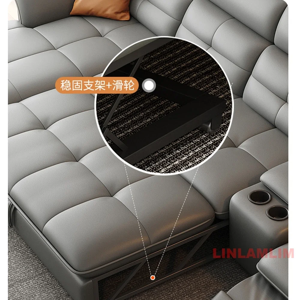 Modern Electric Recliner Sofa Bed with Adjustable Backrest, L-Shaped Leather Sectional Couch, Multifunctional Design with Storage and Cup Holders for Living Room