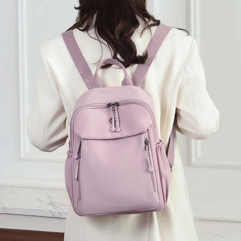 New High Quality Nylon Women Back Pack Solid Color Waterproof Travel Backpack Casual School Bags Girls Shoulder Bag Sac A Dos