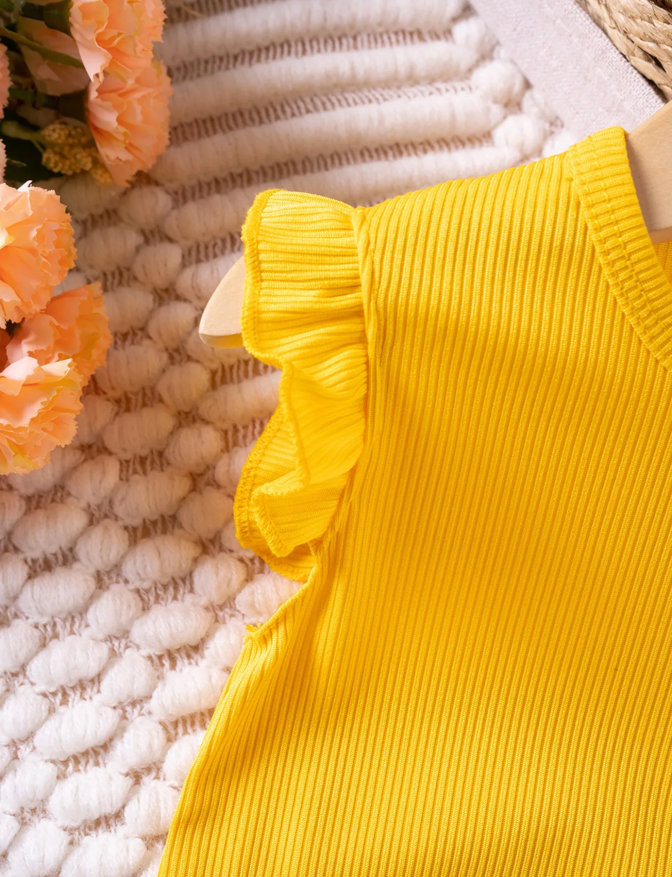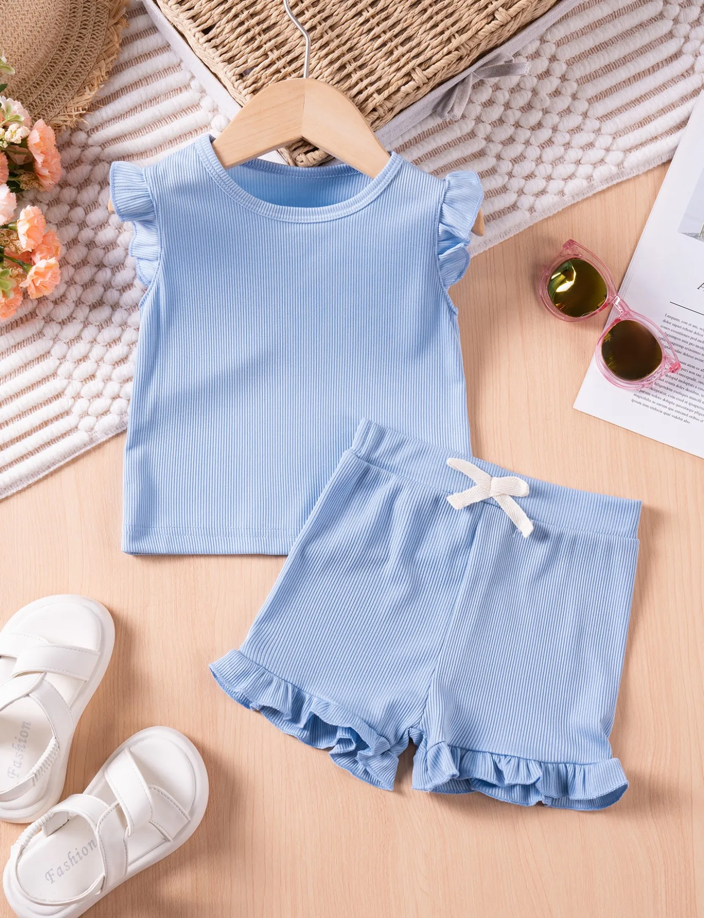 Summer Toddler Girl Ruffle Sleeve 2pcs Set Sleeveless T-shrits Top and Shorts Outfit for Kids Girls Solid Suit Clothing