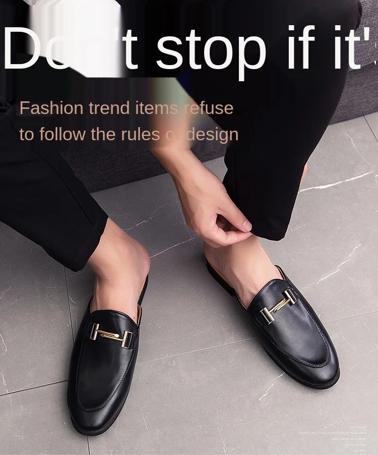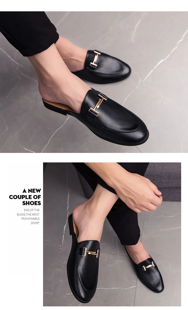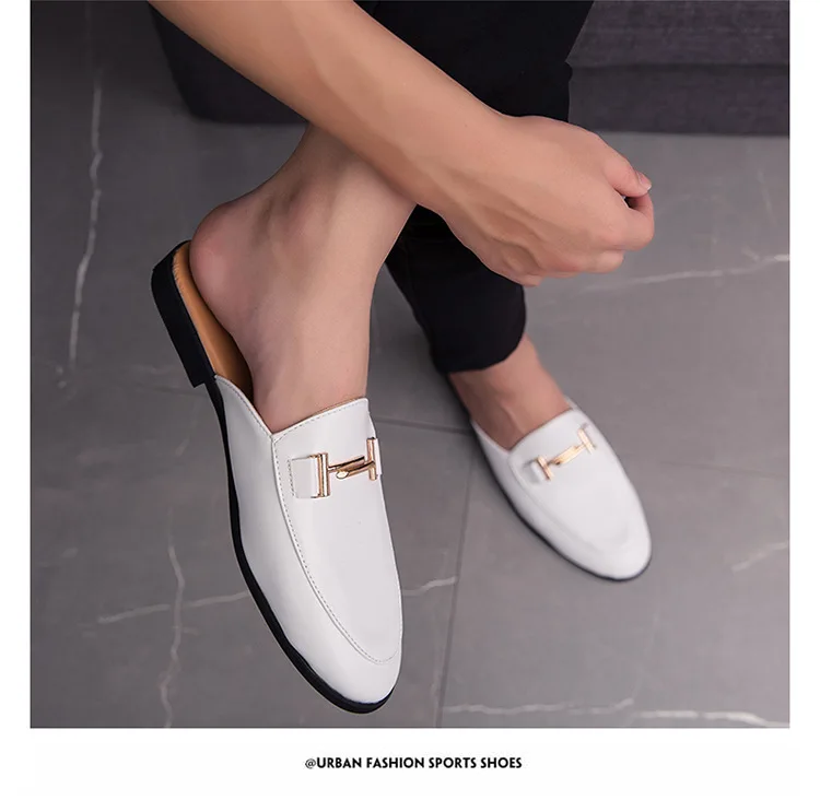White Slip on Shoes Men Mules Leather Shoes Man Classic Black Half Shoes for Men 2025 Mules Homme Chaussure Homme Mule Masculino